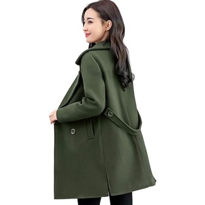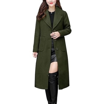 Women's Winter Wool Coat Casual Notch Lapel Single-Breasted Peacoat