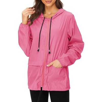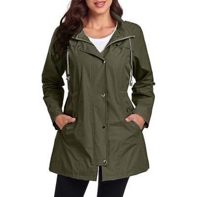 Women's Raincoats Windbreaker Rain Jacket Waterproof Lightweight Outdoor Hooded Trench Coats S-XXL