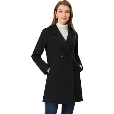 Women's Notched Lapel Double Breasted Raglan Winter Coats