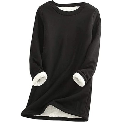 Women Warm Sherpa Lined Fleece Crewneck Sport Sweatshirt Pullover Loungewear