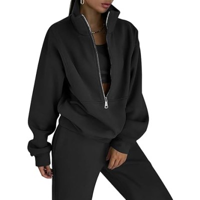 Women's Fleece Two Piece Outfit Half Zip Sweatshirt and Joggers Pants Set Tracksuit