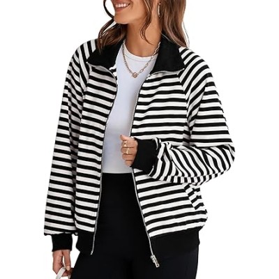 Sweatshirt for Women Long Sleeve Casual Zip Up Striped Womens Sweatshirt With Pockets Lightweight