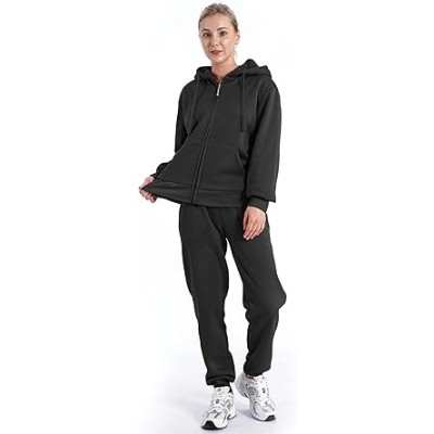 Women Set Sherpa lined Casual 2 Piece Outfits Sweatsuit
